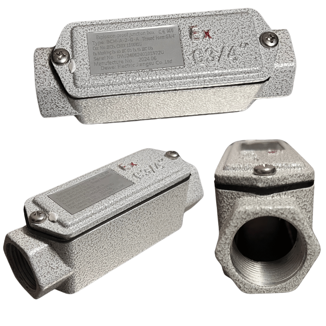 The BHC Series of Explosion-Proof Copper Free Aluminium Cable Bushing Pull Box, are used to provide access points within a steel pipe wiring conduit system, facilitating the installation and maintenance of electrical cables by allowing them to be pulled through long or complex conduit runs. For connecting electrical equipment to power supply in hazardous locations. Designed to meet stringent protection standards of IECEx and ATEX. It is essential for the mechanical protection of conductors and cables, ensuring secure passage through various installations.