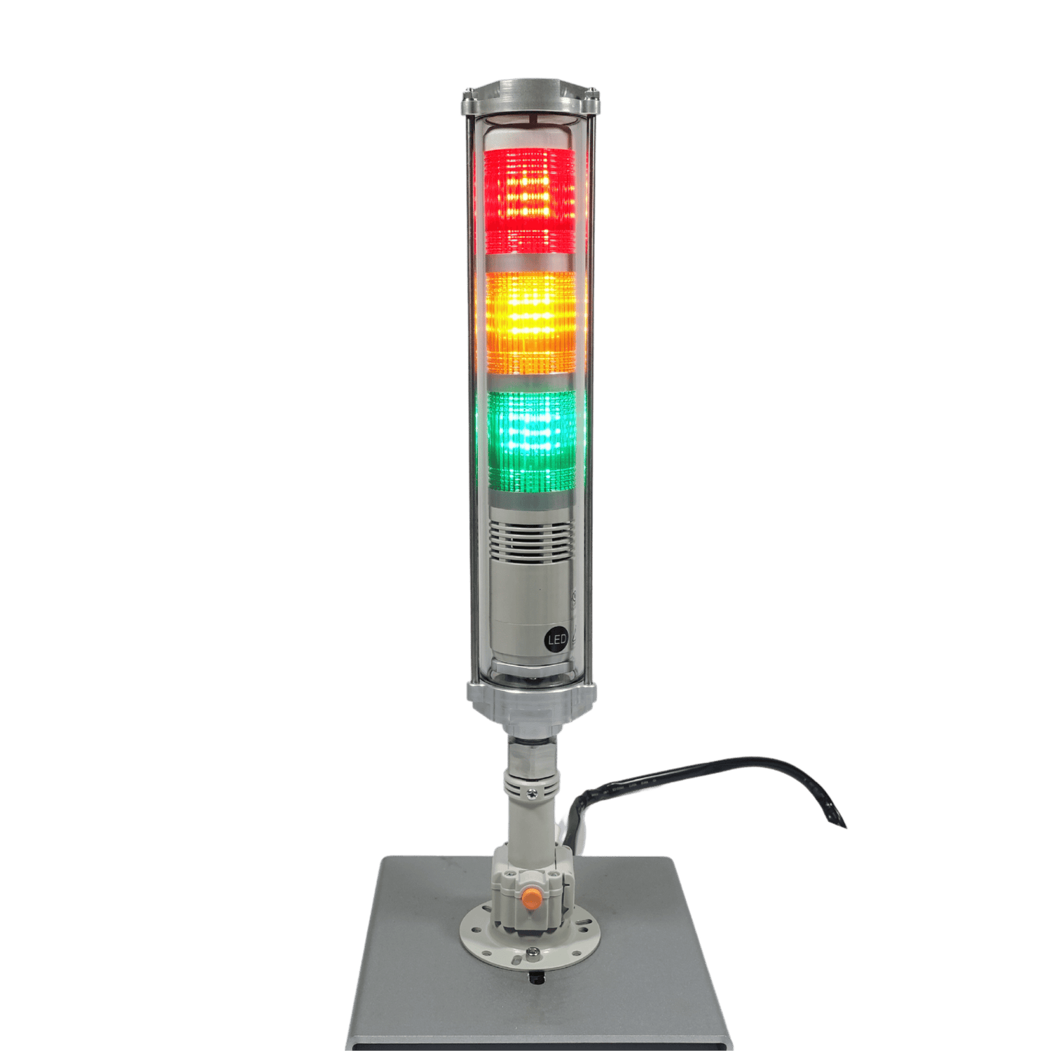 Customisable LED Segments: Available with 1 to 5 stackable LED sections in red, orange, green, blue, white. The sequence and combination can be tailored to specific operations.